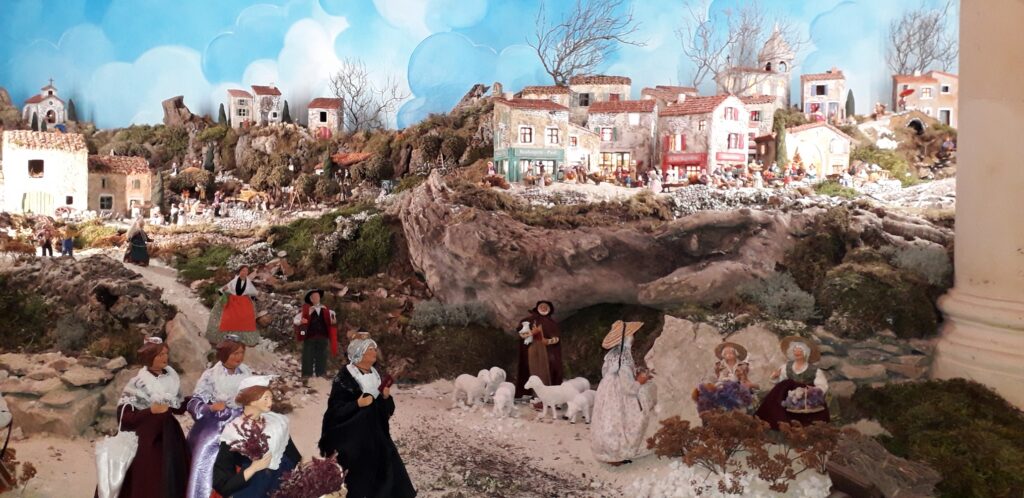• Edouard, afogat de grépias e de l’istòria de cada personatge, nos explica dins lo dethalh lo desrotlament de cada scèna. Se servís, siá de la legenda, siá de l’istòria restacada ; çò que fa la vistalha encara mai agradiva ! Als santons costumièrs a apondut de personatges de la literatura, del cinèma, de la vida publica.